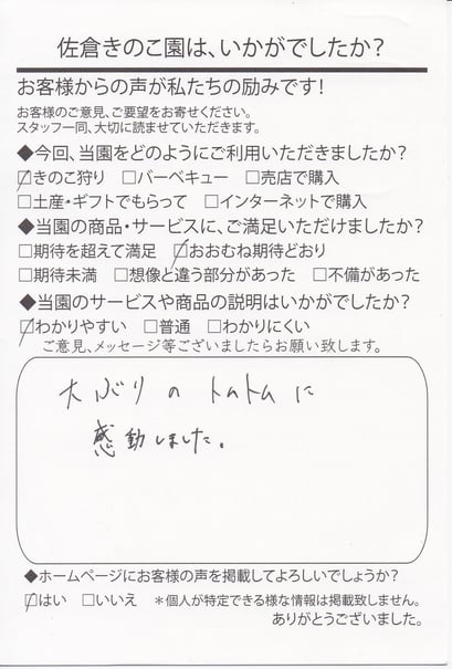 この度は、ご来園ありがとうざいます。
