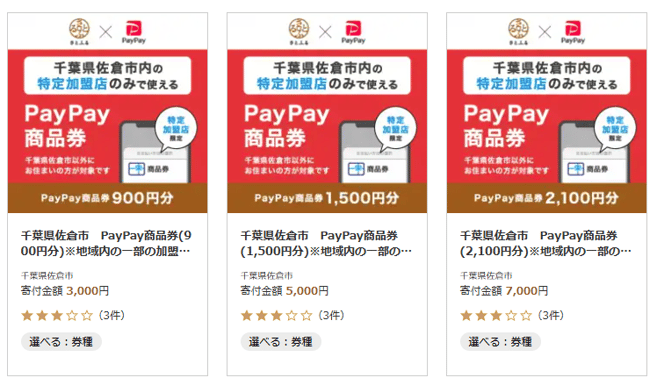 ※PayPay商品券はサイト内検索で「佐倉市 paypay」と入力してください。