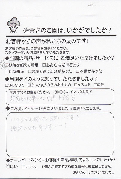 「いつまでも続けて欲しい」「絶対にまた来ます」とのお言葉、本当にありがとうございます!